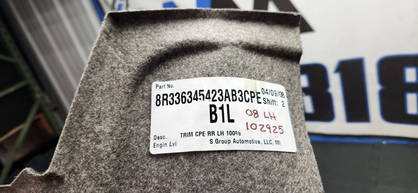 2005-2009 Ford Mustang Driver LH Driver Trunk Inner Trim Carpet OEM