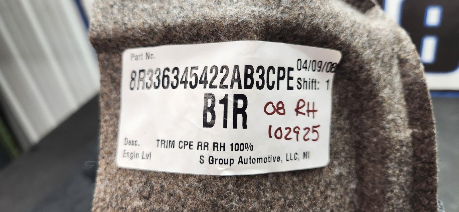 2005-2009 Ford Mustang RH Passenger Trunk Inner Trim Carpet OEM