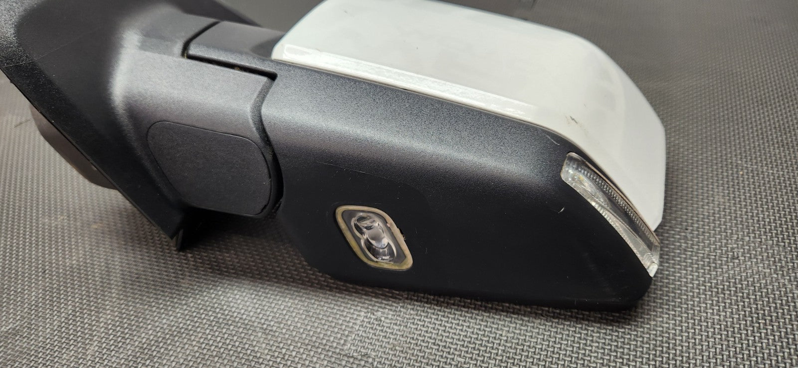 Pulled from a 2016 F-150 King Ranch. OEM White Mirror with Power Fold, Puddle Lamp and Turn Signal. There is a few scratches on the cover as seen in the pictures. Questions or concerns please let us know.