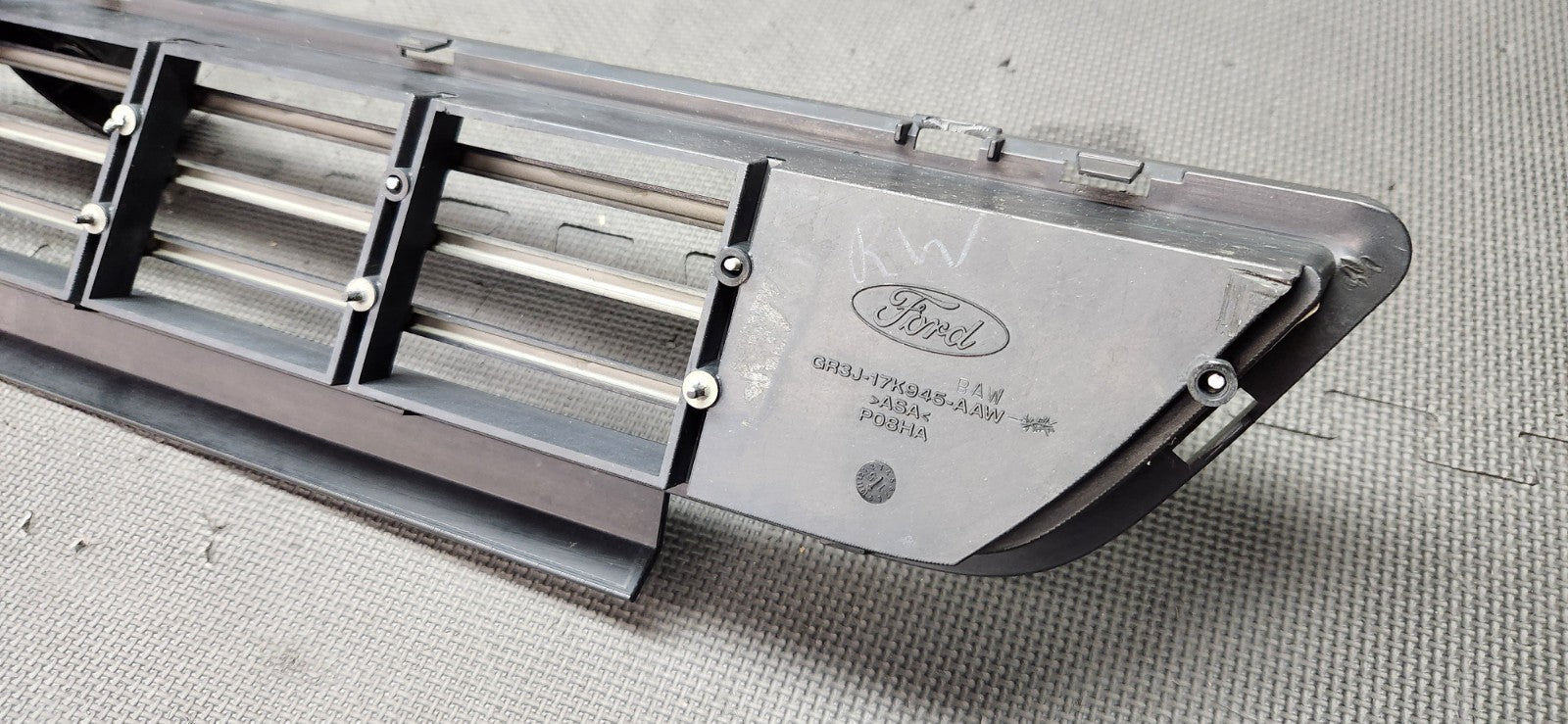 Pulled from a 2016 Mustang GT California Special w/85k. OEM California Special Lower Grille. There is one broken tab and small crack inner casing top side, barely be seen. Please check with dealership on proper fitment. Questions or concerns please let us know.