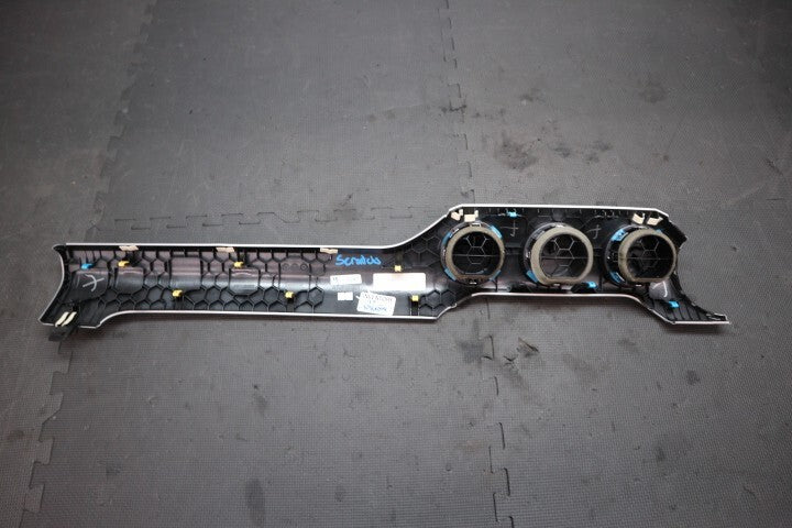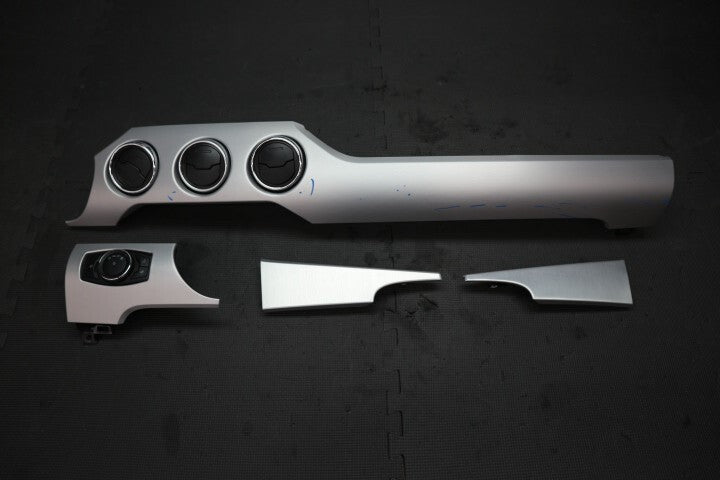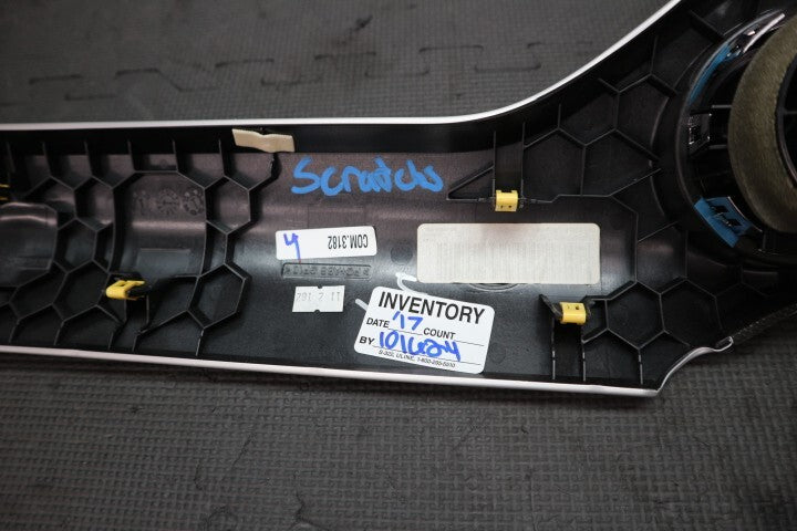 Pulled from a 2017 Ford Mustang GT. This is a 3-piece set (center dash trim, light trim with light switch, and both side pieces). Will work in 2015-2023 Ford Mustangs. The blue marks are dings in the dash trim. Please see pictures for details. Questions or concerns please let us know.