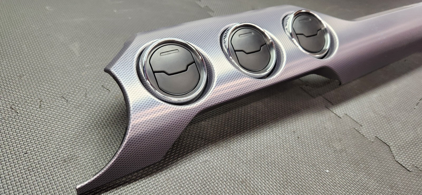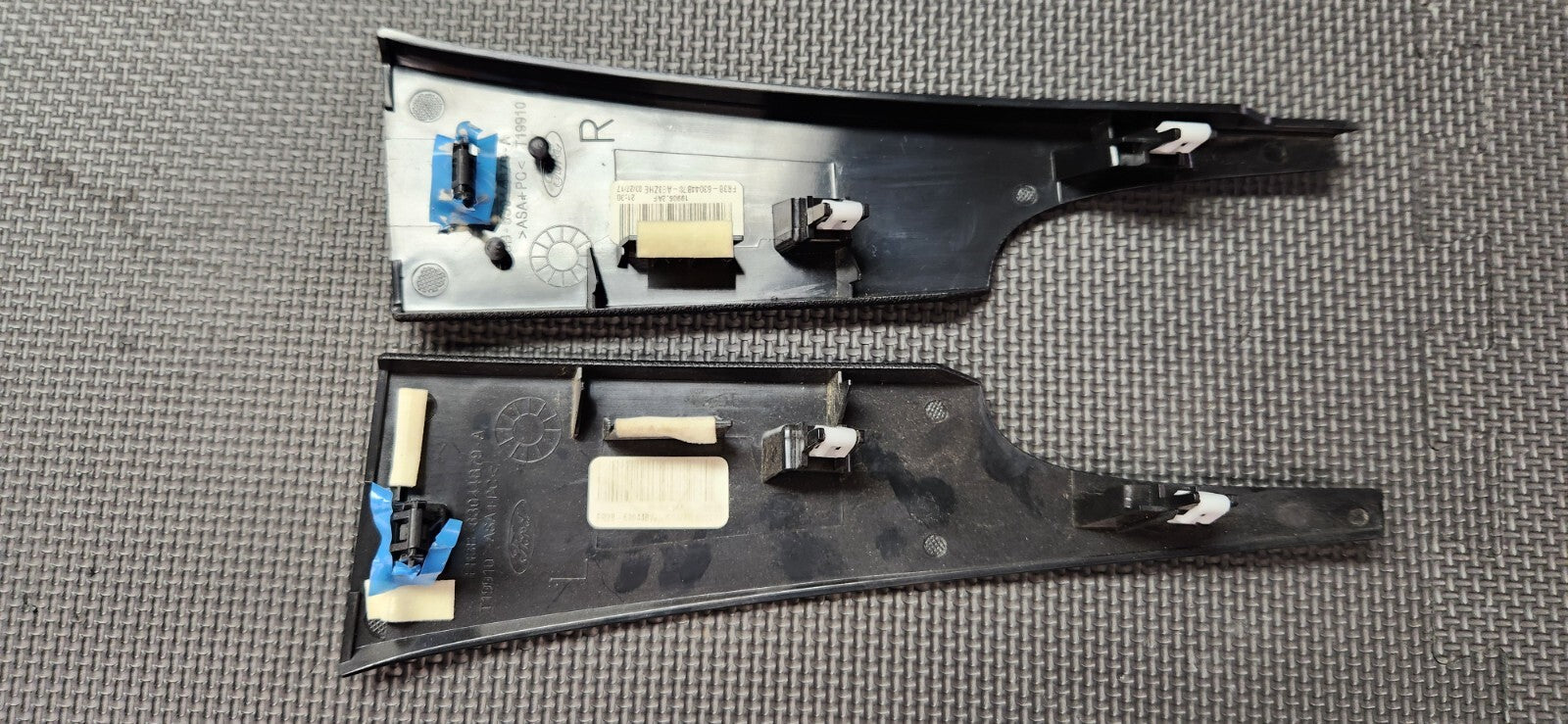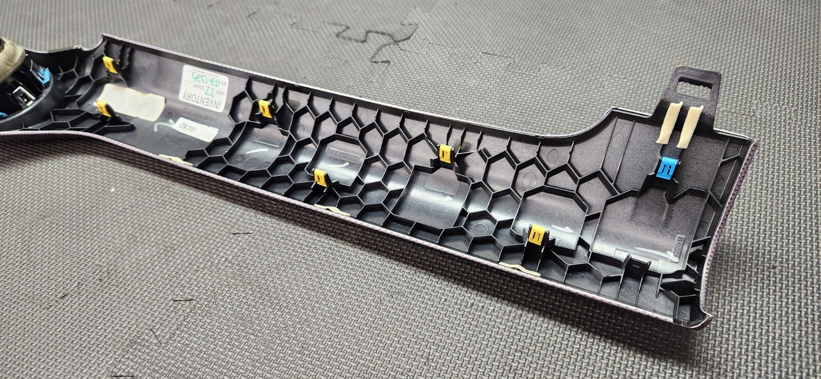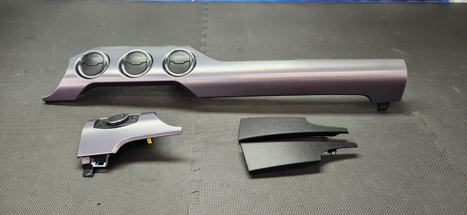 Pulled from a 2017 Ford Mustang GT. This is a 3-piece set (center dash trim, light trim with light switch, and both side pieces). Will work in 2015-2023 Ford Mustangs. The blue marks are dings in the dash trim. Please see pictures for details. Questions or concerns please let us know.