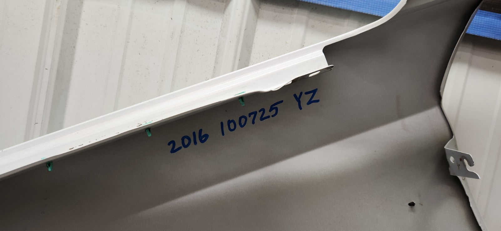 Pulled from a 2016 Ford Mustang GT w/23K. White OEM RH Passenger Fender. Paint code YZ -- has nick marked with blue tape. Please see ALL pictures above for all details. Questions or concerns please let us know.