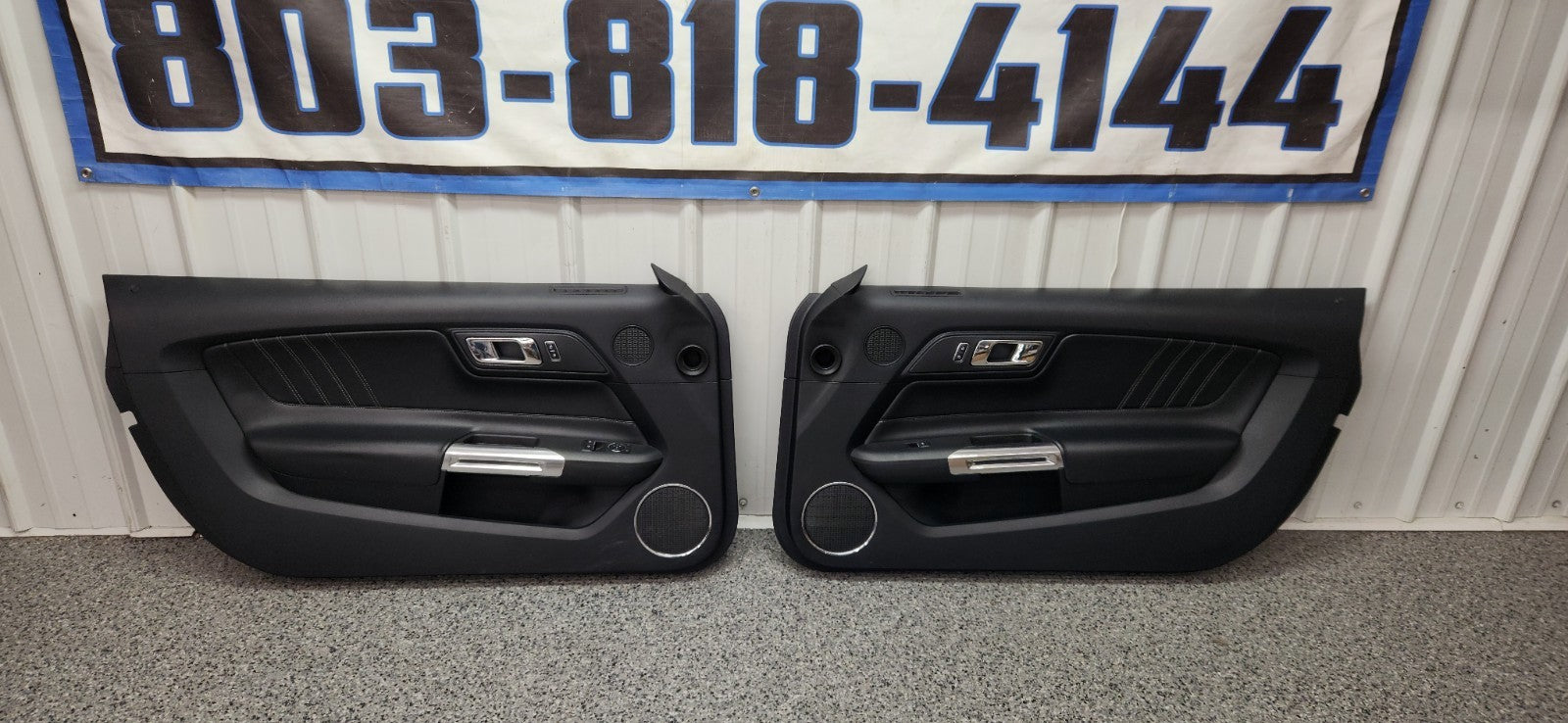 Pulled from a 2016 Ford Mustang GT. These door panels have the black leather inserts. Great condition. Please see all photos for details. There are a few scruffs on the bottom of the passenger panel. These will fit a V6 or GT Mustang 2015-2023. Complete Set LH and RH. If you have any other questions, please let us know.